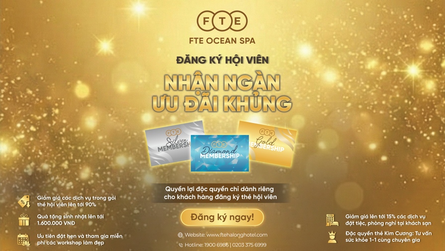 Chăm sóc sức khỏe và sắc đẹp không chỉ là một trải nghiệm nhất thời, mà là hành trình cần được đầu tư bền vững. Thấu hiểu điều đó, FTE Ocean Spa – Khách sạn FTE Hạ Long 5* chính thức triển khai chương trình thẻ hội viên với ưu đãi lên tới 90%, mang đến đặc quyền chăm sóc toàn diện với chi phí tối ưu dành riêng cho khách hàng thân thiết.