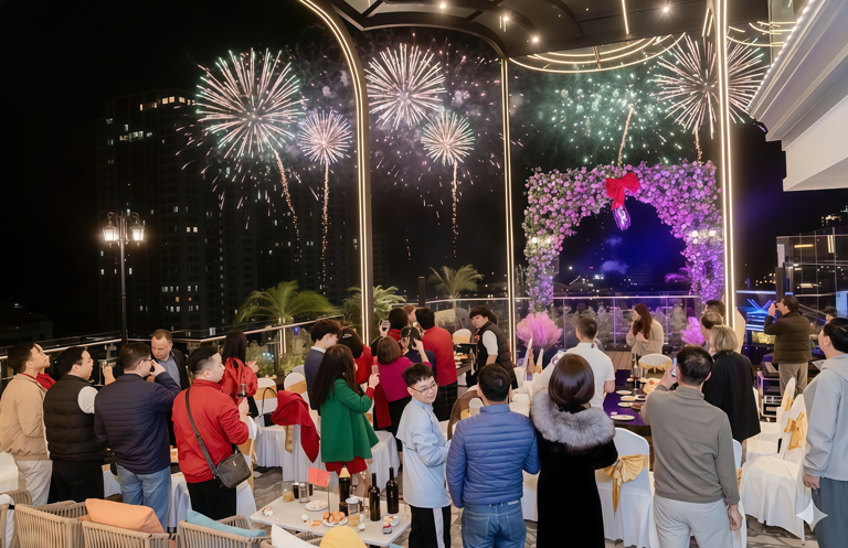 Giữa những giây phút cuối cùng của năm cũ, không gian buffet được decor tiệc tinh tế với ánh đèn dịu nhẹ, bàn tiệc chỉn chu và không khí lễ hội ngập tràn. Hương vị hải sản tươi ngon, các món ăn đa dạng lan tỏa trên từng bàn tiệc, hòa cùng tiếng cười, tiếng chạm ly thân quen, tạo nên một bữa tiệc năm mới ấm áp – nơi mọi người có thể chậm lại để tận hưởng và lưu giữ những kỷ niệm đẹp.